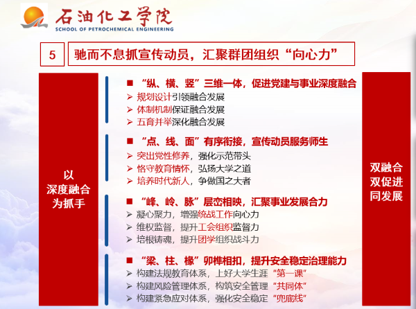 公司党委以政治建设为统领,探索形成一体贯通、双向奔赴、多相耦合的“六同六融”法,推进党建和事业从“彼此契合”到“相互成就”,实现深层次融合、全方位促进、高质量发展。...