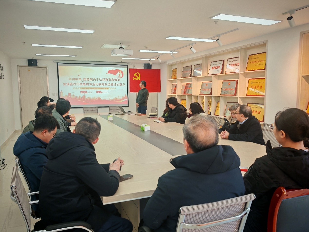 活动中,支部书记以讲党课的形式,带领大家深入学习了《中共中央国务院关于弘扬教育家精神加强新时代高素质专业化教师队伍建设的意见》。通过学习,参会教师深刻认识到教育家精神和师德师风的重要意义。