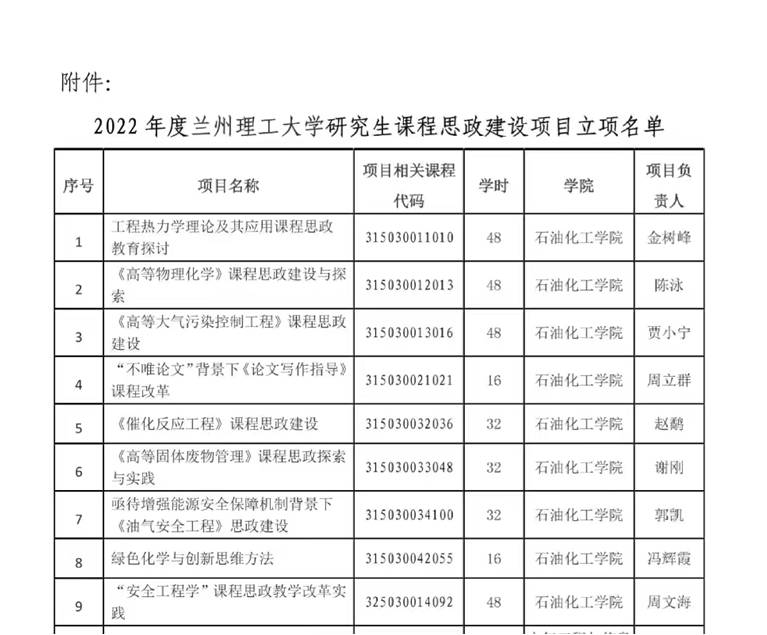 2022年11月2日,金年会官方网站入口2022年度研究生课程思政项目建设立项名单公布。经个人申请,公司推荐,研究生院审核和专家评审,金年会金字招牌诚信至上《工程热力学理论及其应用课程思政教育探讨》9个项目获得立项。(撰稿:谢吉仁;终审:任鹏)