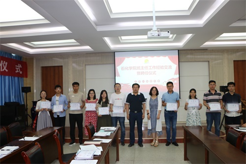 会上进行了2019级新生班主任和高年级员工党员、班团干部兼任新生副班主任的聘任仪式并合影留念。