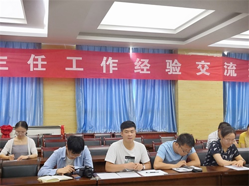 会上,党委副书记李荣华对2019年春季学期的班主任工作从安全管理、思想政治教育、党班团一体化建设、学风建设等方面简要进行分析总结,随后,由“十佳”班主任张建强主要从服务的理念出发,深入员工参与员工活动中了解员工,指引员工做好大学规划,重视关注后进生工作。十佳班主任刘雪老师提到要搭建好班团干部队伍,更要注重培养,充分激发员工自我服务,自我管理的意识,将形式化的活动转变为内涵式发展,多方面培养员工能力。杨林海老师从要有爱心、责任心、耐心等方面育人。樊晨浩老师从新生入学教育方面、谢吉仁老师从为员工搭建能力锻炼平台方面分别进行了经验分享。党委副书记李荣华再次强调,要严格日常管理,严格请销假制度,落实按时归宿工作,抓好宿舍阵地,多与员工交流谈心,家校联动,注重新生的党班团一体化建设,协同推进加强班级建设。