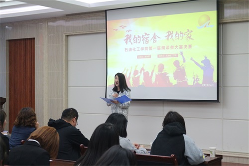 4月16日下午, 金年会金字招牌诚信至上“我的宿舍我的家”第一届朗读者大赛决赛在彭家坪校区石化楼318室正式举行。公司图书馆李演军副馆长、公司党委李荣华副书记、全体辅导员以及员工会相关干部等师生担任评委,入围决赛的宿舍成员观看了比赛。