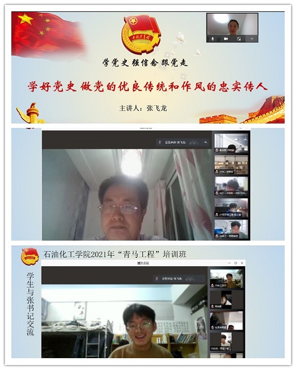 张飞龙首先讲述了自鸦片战争以后,中国逐步沦为半殖民地半封建社会,国家蒙辱、人民蒙难、文明蒙尘,中华民族遭受了前所未有的劫难。然后从1921年中国共产党成立,中共“一大”会议召开到2021年中国共产党成立一百周年庆典,介绍了中国共产党的百年发展史,太平天国运动、义和团运动、洋务运动、戊戌变法、辛亥革命、五四运动等重大历史事件为中国共产党的成立奠定了基础。新民主主义革命时期,召开八七会议、建设井冈山革命根据地、召开中共六大、西安事变、抗日战争的胜利等重大历史事件,为新中国的成立奠定了基础。新中国成立后,随着改革开放逐步推进,我国在政治、经济、科技、文化等领域的迅猛发展,终于在2021年实现了全面建成小康社会的初步胜利,取得了脱贫攻坚的伟大胜利,并迈向了第二个百年奋斗目标。作为当代青年,同学们要谨记“勤学,修德,明辨,笃实”的要求,做坚定的共产主义信仰者,做忠贞不渝的爱国主义,做中国特色社会主义建设者和可靠接班人。 (撰稿:常婕;终审:任鹏)