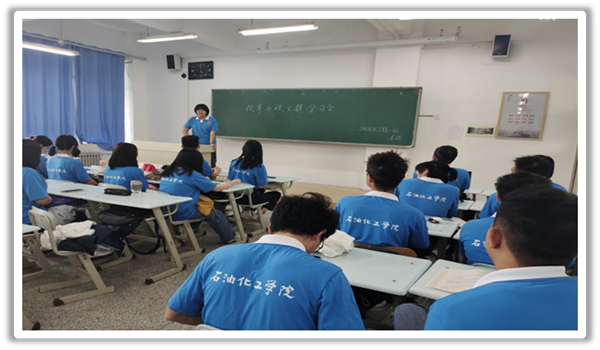 团支书贾文玉同学带领大家开展党史学习教育板块的改革开放专题学习,回顾了国家改革开放以来政治、经济、科技、教育、文化、人民生活等多方面的发展,40多年的改革开放带来了翻天覆地的变化,但我们仍要深刻认识我国社会发展仍然存在不平衡不充分的问题,我国社会发展的主要矛盾已转变为人民日益增长的美好生活需要和不平衡不充分的发展之间的矛盾,也要清醒认识到我国仍然是最大的发展中国家的基本属性没有变,要实现中华民族伟大复兴中国梦,必须要靠一代人接着一代人的不懈奋斗。