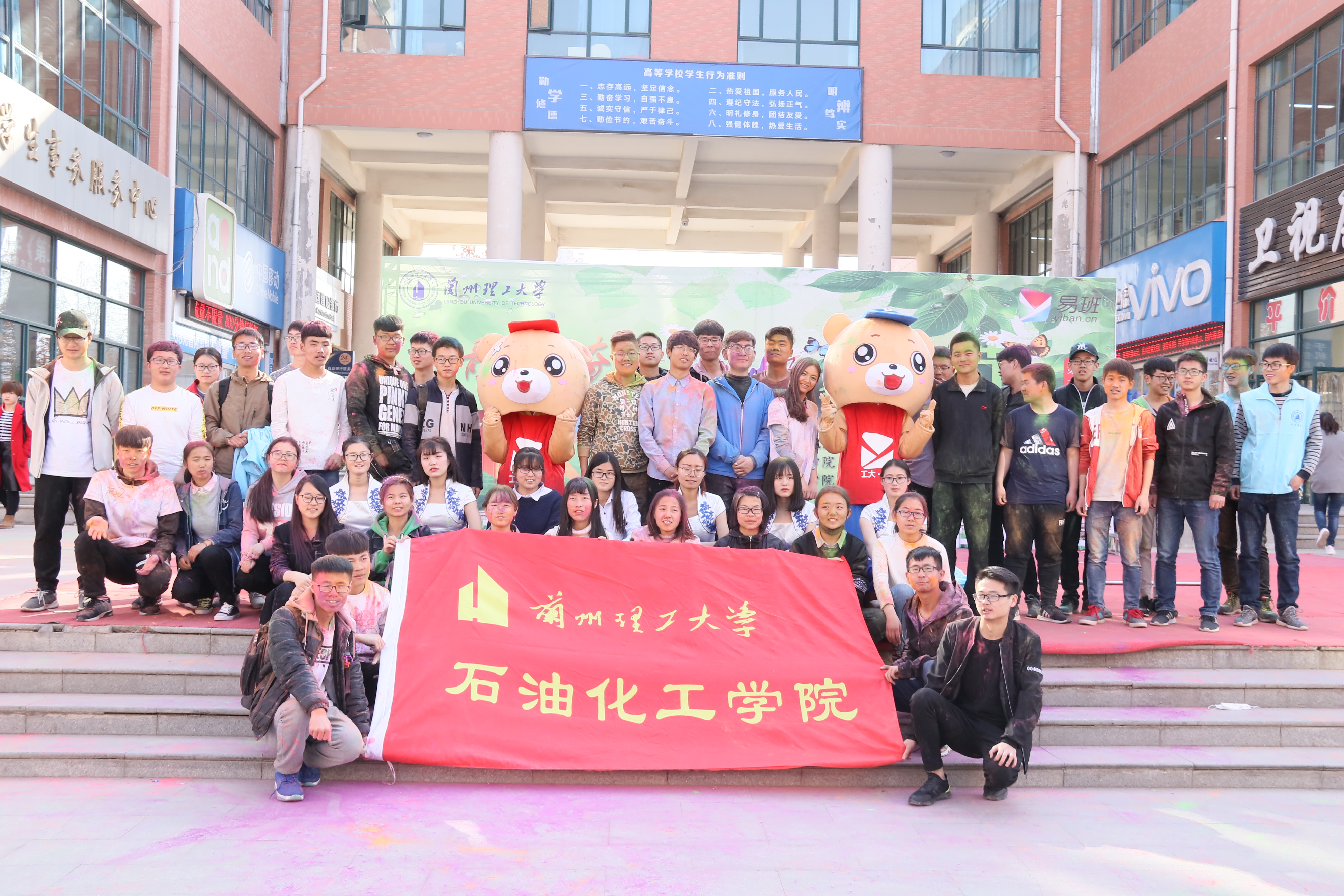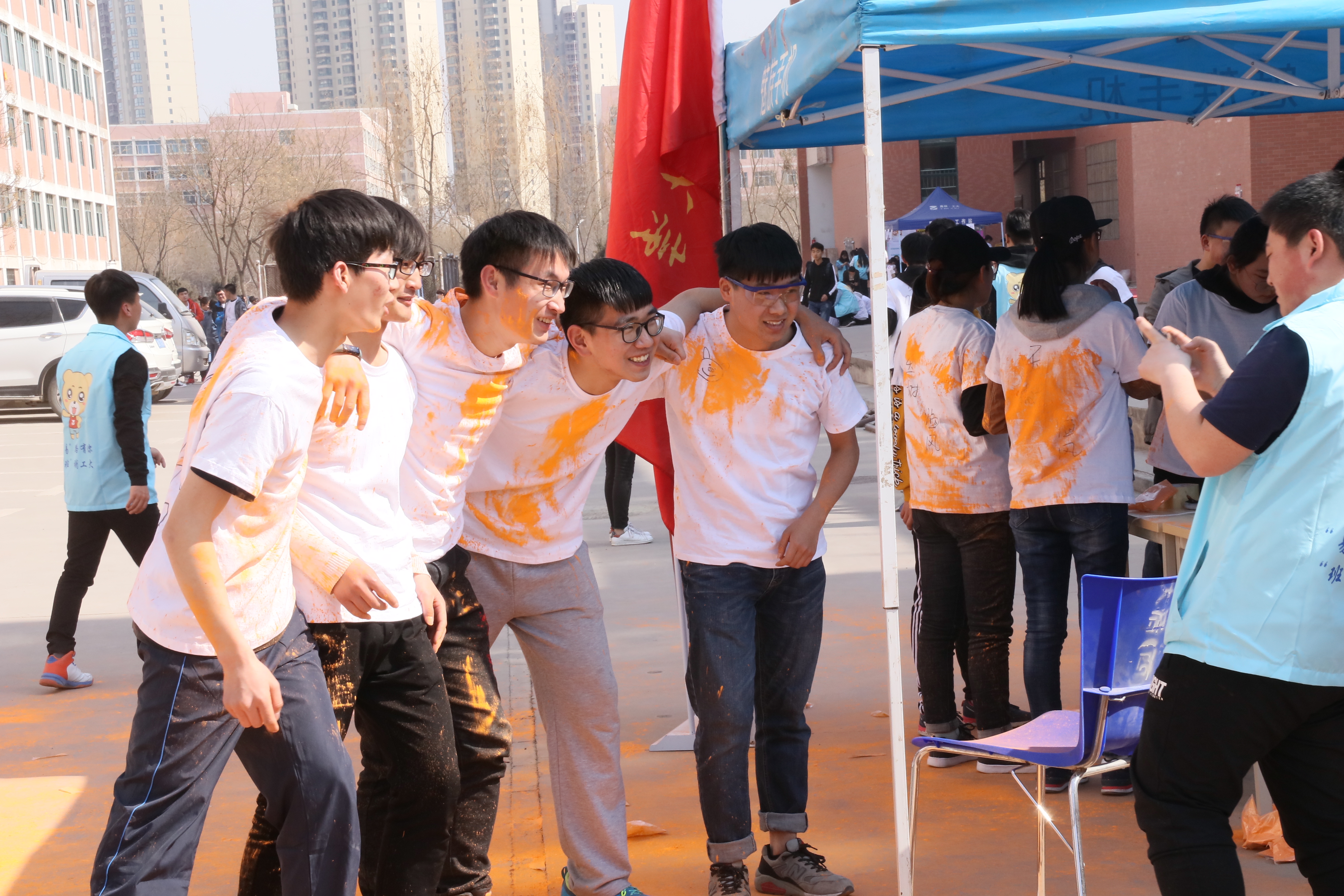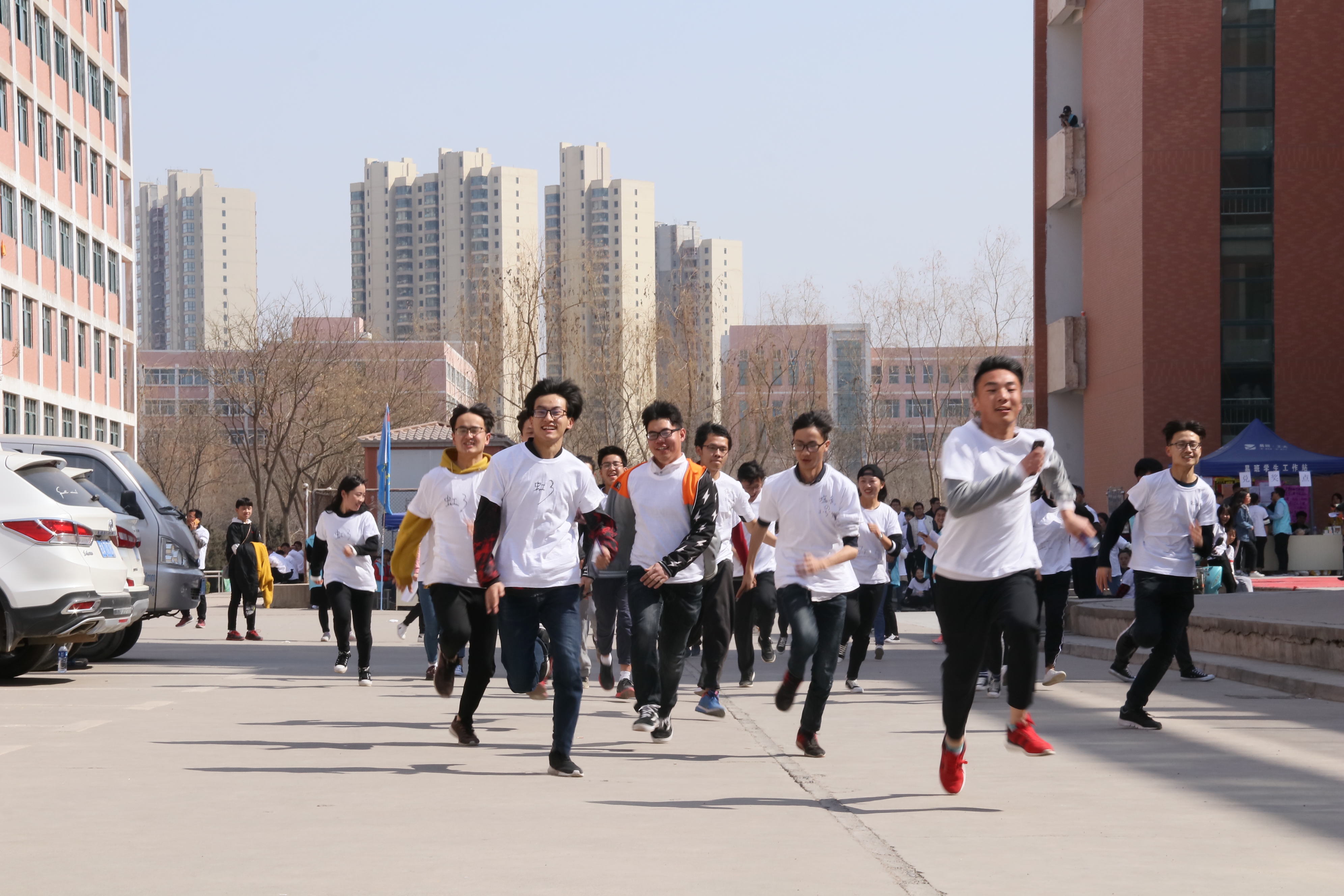 大赛于当日下午在红柳广场准时开始,39支参赛队伍身着“彩虹跑”文化衫整齐列队,首先由主持人为参赛队伍讲解活动规则,明确规则后各队按照抽签顺序分组、分时段准时开跑,在红柳广场第一站通过“环保小习惯”环节(通过手机易班完成电子问卷),在玉川广场第二站通过“植物王国”环节(通过手机易班抽取植物图片,猜出名称并总结特点发话题至微社区),在石化楼第三站通过“我知石小易”环节(抽取“绿色银行”、“学长的火炬”相关问题并作答),在一号教学楼第四站通过“小易猜猜猜”环节(抽取易班logo并猜出所属公司),在南村食堂第五站通过“青春▪奋斗”环节(在“彩虹植树节”轻应用评论板块提交“队名,青春,奋斗”),完成五个站点各个环节的游戏任务后领取不同颜色的彩虹粉,一边奔跑,一边为队友涂抹上色,并上传团队合照至金年会官方网站入口微社区。所有参赛队伍在完成比赛后,回到红柳广场集合,参加颁奖仪式。