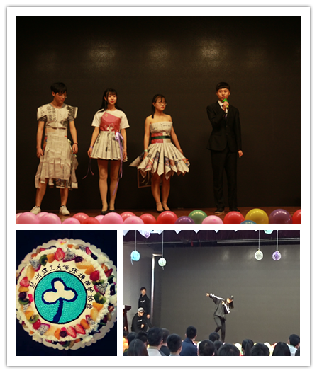 会庆在环保协会同学十年前创作的悠扬会歌《希望》中开始,通过PPT、小视频等方式,生动的展示了十八年来一批批协会成员锐意进取,开拓创新,在校园文化活动和暑期社会实践等平台不断摸索和实践,将协会打造成为省内知名并在全国有一定影响力的高校环保社团的历程,让现场的观众体会到了协会“传承、协作、创新”的社团文化。接下来曳步舞社团、The-X魔法公司、环境保护协会各部门为大家带来了精彩纷呈的文艺表演,引来了大家的掌声与喝彩,伴随着印有环保协会会徽生日蛋糕的出现,现场气氛达到高潮。会庆最后,指导老师强龙勉励协会成员在“一心双环”的团学组织新格局下,积极适应共青团改革新形势和广大同学的新特点,主动对照党的期望、团的要求,促进“三下乡”等实践项目的内涵提升,切实发挥员工社团的外围延伸手臂作用,团结带领更多青年争做“绿水青山就是金山银山”理念的守护者、践行者,积极为改善生态环境传播好声音、聚集正能量。