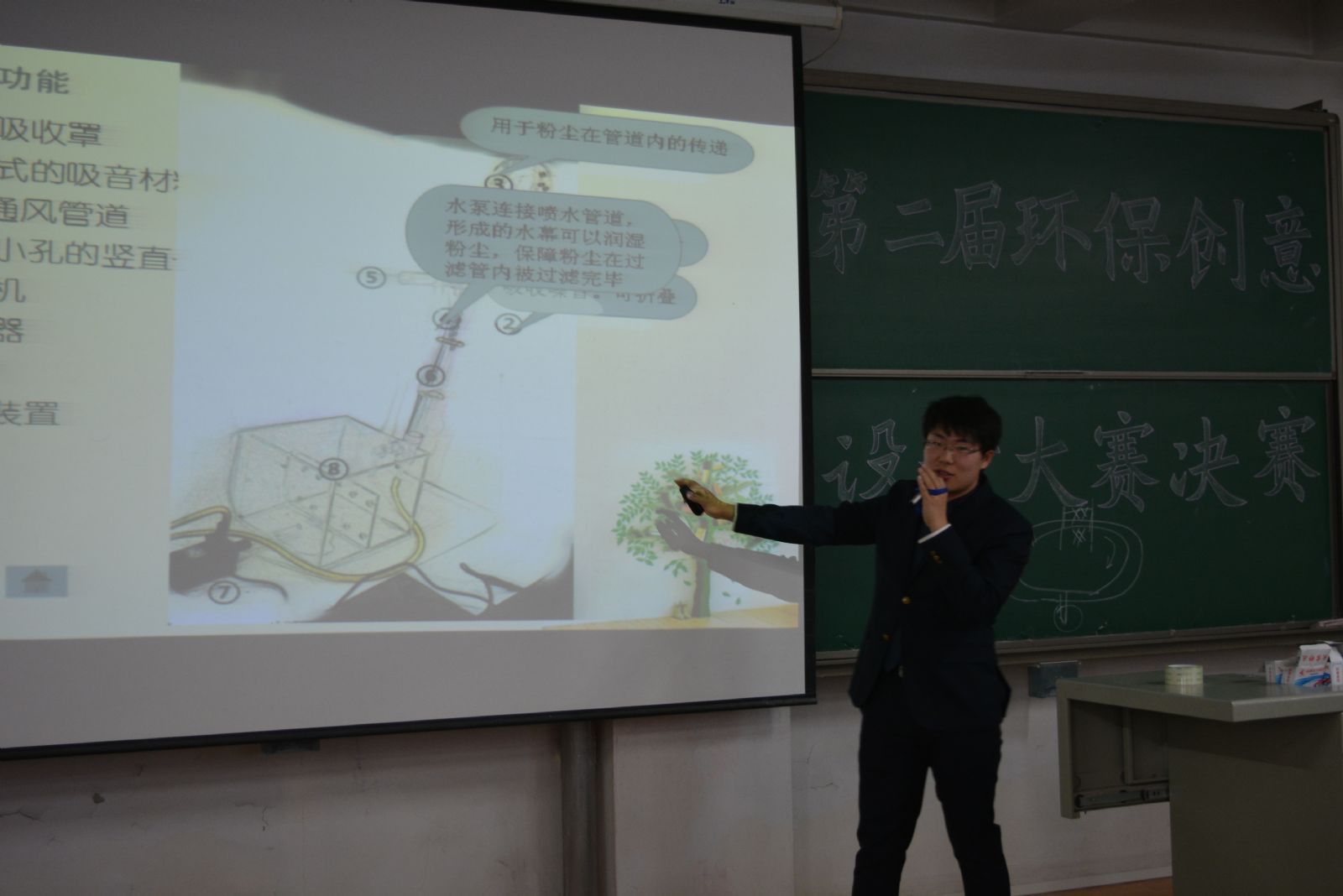 10月31日上午,由公司教务处主办,金年会金字招牌诚信至上、公司环保协会承办的以“培养创新意识、树立创新精神、提高创新能力”为宗旨的金年会官方网站入口第四届化工设计及安全环保大赛——环保创意设计大赛决赛在西校区2号楼506教室举行。金年会金字招牌诚信至上隽惠玲书记、冯辉霞副经理、张伟政副经理、李荣华副书记,以及环境工程系的全体老师应邀出席大赛并担任评委。