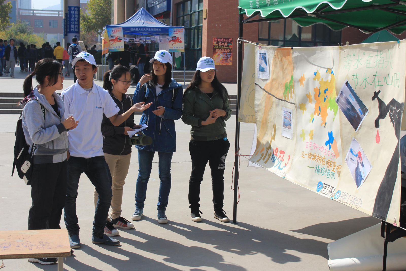 作为TOTO水项目的系列活动之一,10月20日中午,环境保护协会在西校区红柳广场开展了以“保护水环境,节约水资源”为主题的宣讲活动。本次活动主要以海报讲解的形式向来往员工进行水环境概况,水资源浪费现象和水污染三方面的宣讲。活动现场有同学指出,校园内浪费水的现象比比皆是,如果不了解现在的水资源概况,就不会产生危机感,此次宣讲很有意义;也有人表示自己从小生活在离黄河边不远的地方,觉得这两年水质不断恶化,保护水资源迫在眉睫。宣讲人员则对现场同学说,同学们的思想问题是最根本的问题,只有广大同学了解情况、转变思想、付诸行动,才能从根本上解决问题。