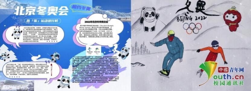 “红柳学子,逐梦飞扬”寒假社会实践团队队员绘制的冬奥海报