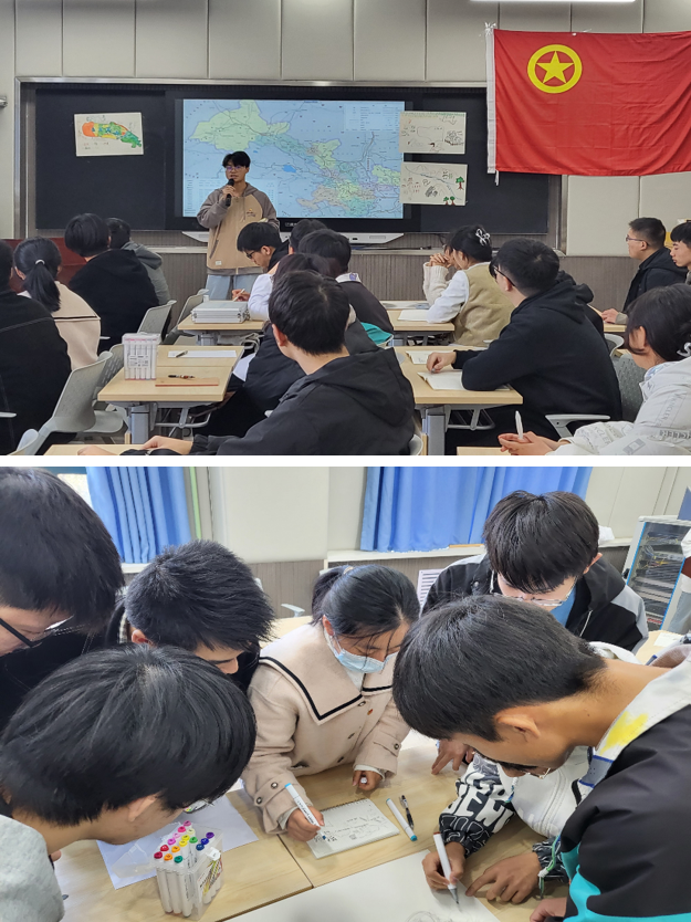 路正邦带领全体同学认真学习了习近平总书记在全国生态环境保护大会上的重要讲话精神,司佳佳等同学分享了学习心得。2022年度“最美环保志愿者”荣誉称号获得者朱柯宇同学分享了自己参与环保公益活动八年来的成长足迹和收获,呼吁更多的同学加入环保公益事业的队伍,在生态环境领域耕耘。谢康康同学演示了水质检测实验,对校园自来水的部分指标进行了检测。全体同学分组绘制出“我心中的美丽甘肃”海报,用绘画呈现了祁连山、鸣沙山、白龙江、甘南草原的美景,并简要介绍了四个地方的地貌特色和生态特点。通过一系列的理论学习和实践环节,引导团员们深入了解我省生态环境状况,鼓励同学们今后积极践行“美丽甘肃,青春行动”,做生态文明建设的青年先锋。(撰稿:常婕;终审:任鹏)