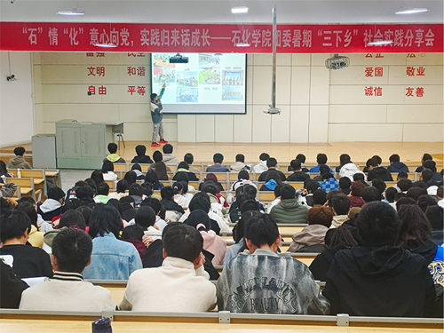 为深入学习贯彻习近平总书记关于青年工作的重要论述精神,总结2024年暑期“三下乡”社会实践成果,2024年10月28日,石油化工公司在彭家坪校区举办2024年暑期“三下乡”社会实践分享会。公司各实践队成员、2024级全体本科生参加。