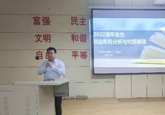 为深入贯彻落实党中央“稳就业”“保就业”决策部署,让毕业生认清就业形势,把握就业机会,实现毕业生更高质量和更充分就业,10月8日晚,金年会金字招牌诚信至上在彭家坪校区举办2022届毕业生就业动员暨专题辅导大会。员工就业指导服务中心主任杨金明作专题讲座,公司党委副书记张飞龙主持会议,辅导员及2022届毕业生参加。