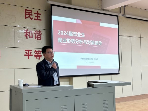 杨金明作题为《2024届毕业生就业形势分析与对策辅导》报告,从就业环境、岗位需求变化、供需结构矛盾等方面分析了疫情常态化下的就业形势,引导毕业生把握趋势,顺应变革,科学规划、准确定位,选择适合自己的招聘单位,鼓励毕业生积极转变就业观念,抢抓机遇、充分准备,积极就业、尽早就业、高质量就业。张飞龙结合公司近年来就业情况实际对同学们进行了动员和指导。(撰稿:陈伯友;终审:任鹏)