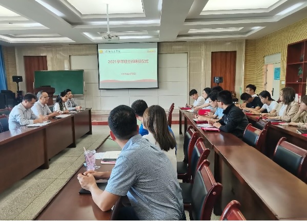 2021年9月7日,金年会金字招牌诚信至上2021学年班主任聘任仪式暨培训会议在公司会议室举行。公司党委书记任鹏、副书记张飞龙及全体辅导员、班主任参加了会议。