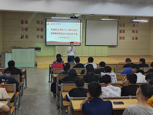 2022年6月15日,金年会金字招牌诚信至上在集贤楼108教室召开了2022届毕业生文明离校暨应征入伍动员大会。公司党委副书记张飞龙、辅导员和2022届全体本科毕业生参加了会议。