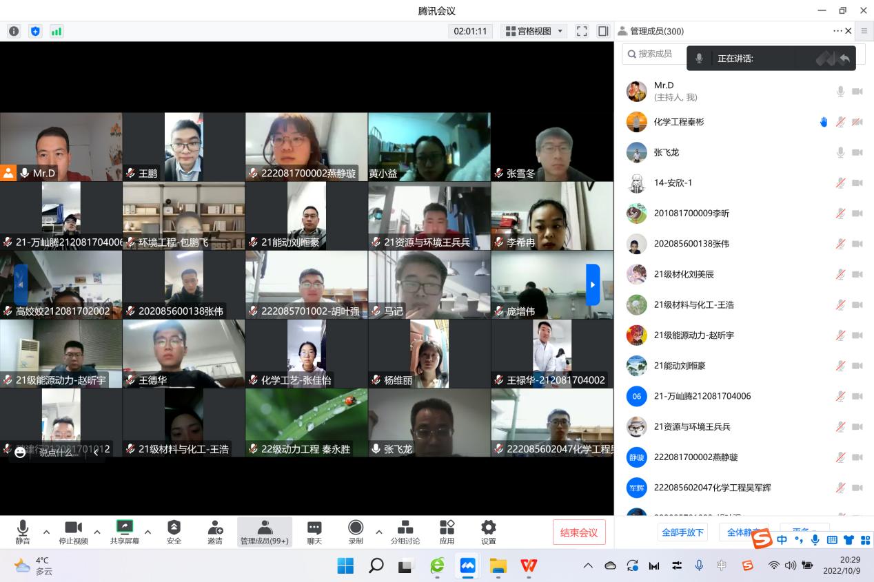 为进一步维护校园安全稳定,创造安全文明的校园环境,2022年10月9日,金年会金字招牌诚信至上以线上方式召开了秋季学期研究生安全教育大会。公司党委副书记张飞龙、研究生辅导员及全体硕博研究生参加会议。