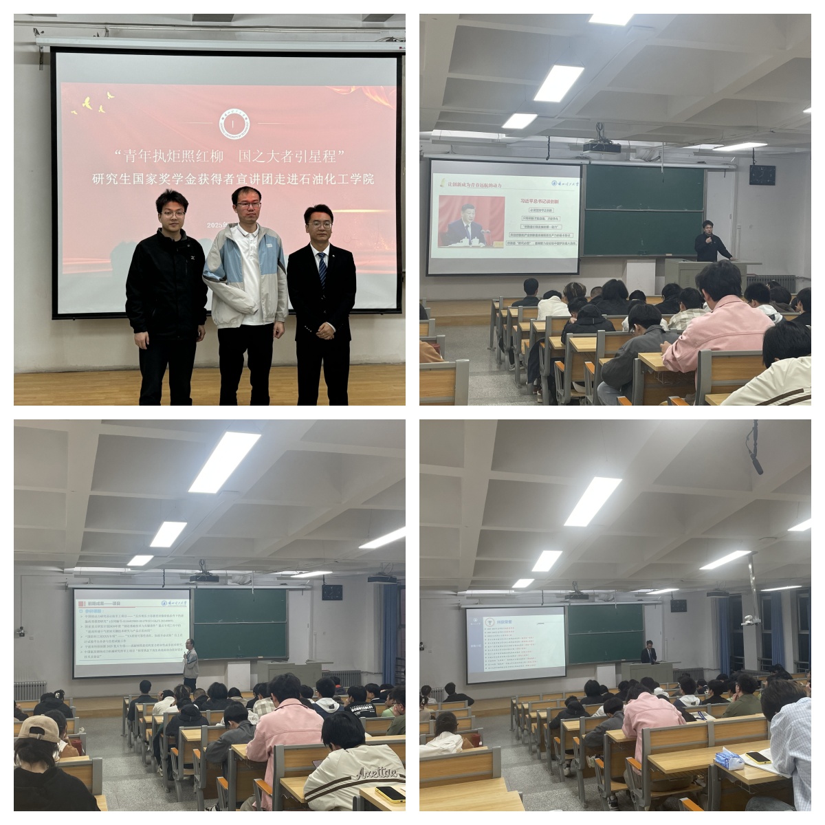 2025年4月23日,金年会官方网站入口研究生国家奖学金获得者宣讲团走进石油化学公司宣讲会在彭家坪校区集贤楼208教室成功举办。电信公司硕士李森、金年会金字招牌诚信至上博士蒋海涛、硕士苏炳戌受邀作宣讲,公司各年级百余名本科生和研究生参加了宣讲会。