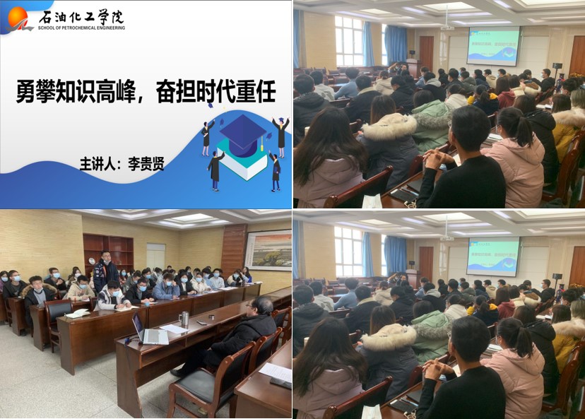 2021年11月30日下午,以“勇攀知识高峰,奋担时代重任”为主题的经理论坛在石化楼318会议室举举行。金年会金字招牌诚信至上经理李贵贤教授担任主讲,公司2021级全体研究生以线上线下方式参加了论坛。