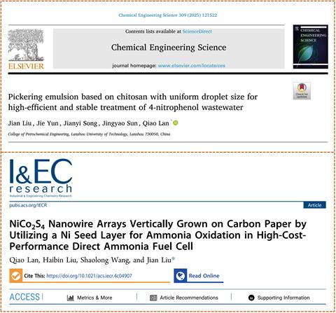 在化学工程领域,被广泛认可的三大顶级期刊包括《工业与工程化学研究》(IECR)、《化学工程科学》(Chemical Engineering Science)以及《美国化学工程师学会期刊》(AIChE Journal),其刊发成果往往代表着学科发展的前沿方向,具有重要的学术影响力。 该团队利用微流控技术制备出大小均一的Pickering乳液并用其构建了具有较大催化界面的连续流动反应器,通过进料方式强化物质传输,提升物质转化性能;同时采用循环伏安电镀与水热处理相结合的方法成功制备出具有NiCo2S4纳米线阵列的碳纸电极并将其作为直接氨燃料电池阳极,因其电极具有高比表面积、低传荷阻力致使在常温下表现出优异的电化学性能。团队成员表示,下一步将继续围绕“化工-能源-环境交叉技术”深化研究,推动成果向产业端落地。(图/文:刘健;终审:李大鹏)