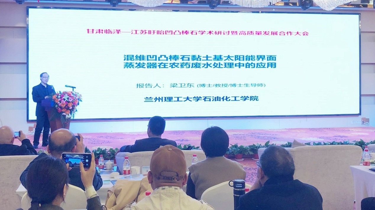 2023年4月22日,甘肃临泽-江苏盱眙凹凸棒石学术研讨暨产业高质量发展合作大会在张掖市临泽县举行,金年会金字招牌诚信至上教授梁卫东带领2名研究生参会,并作题为“混维凹凸棒石黏土基太阳能界面蒸发器在农药废水处理中的应用”的大会专题报告。