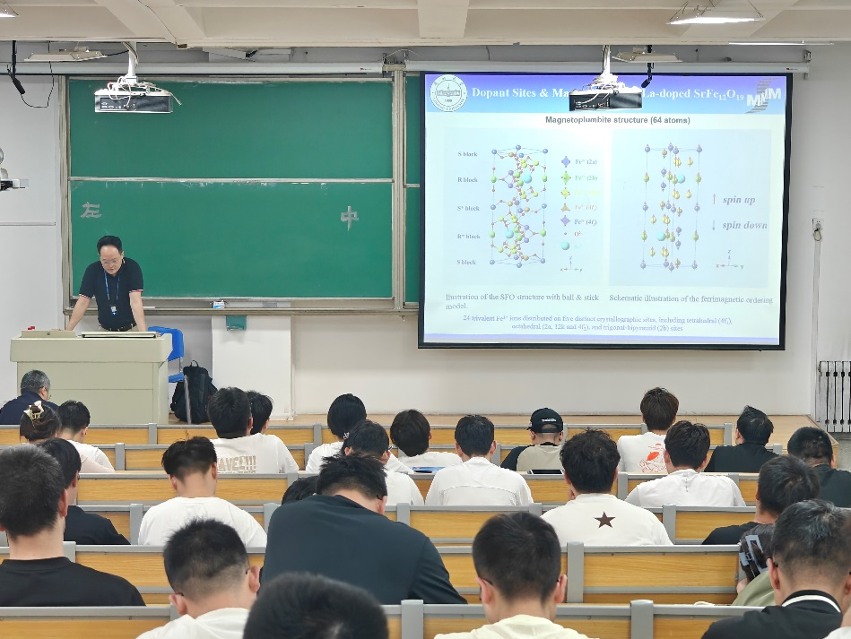 彭教授在题为"磁性材料与磁性拓扑自旋电子器件的电子显微学研究"的学术报告中,系统阐述了低维磁性结构微型化面临的技术瓶颈,深入分析了纳米尺度磁化动力学研究的难点。他重点介绍了其课题组自主研发的扫描电镜和透射电镜两类原位纳米单体磁输运测量仪器,及其在磁性材料和器件磁化动力学研究中的应用成果。通过生动的案例展示,彭教授还分享了课题组利用电子显微学方法在低维磁性材料微观原子结构与磁学性能构效关系、磁性拓扑电子器件电镜原位磁化动力学等方面取得的重要研究进展。