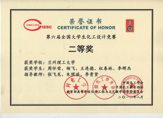 专业组有6个参赛队获奖,化工专业的郭玉、任银桂和史妍获一等奖;赵艳华、代晶、孙建萍、王博魁、米宁刚、马瑞菊、陈顺桃、王亚萍、张健和王硕获二等奖;张丽婷、刘娟娟、马国凤、董开拓、刘明亮、袁晶晶、李蕊霞、马燕、魏永斌、马闯文、常新弟和董娟获三等奖。非专业组有5个参赛队获奖,应用化学专业的马云飞、赵子骞、雒莉莉、任亚鹏和李晓慧获一等奖;应用化学专业的郭永亮、刘国利、曹彦伟、赵颖、岳斌和制药工程专业的付美英、张茜、苏金环、范贤波和刘陆获二等奖;制药工程专业的李文多、闫润疆、秦玲丽、陈海乐、张擅利和食品科学与工程专业的贾祥娟、陈孝勇、龙涛、高政芳、刘晓娟获三等奖。