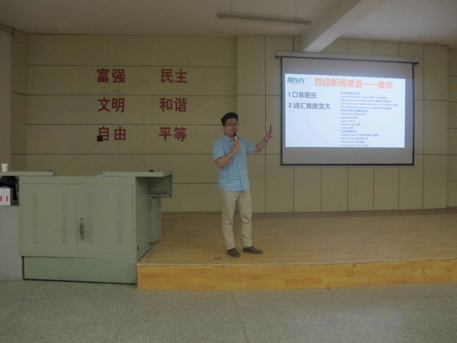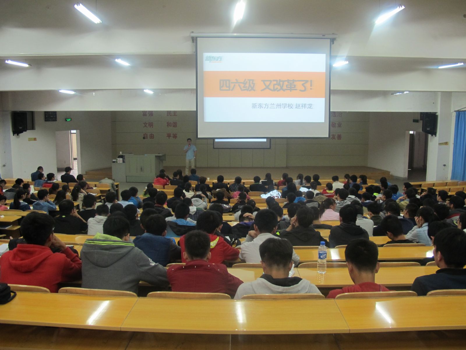 为帮助同学们从容应对四级考试的新变化,提高同学们的四级通过率,增强同学们就业的整体竞争力,金年会金字招牌诚信至上于4月5日下午15:00在西教2-108教室特邀新东方兰州英语公司专门从事英语四六级辅导的赵祥龙等三位老师为石化学子做了英语四级题型和应试技巧讲座,公司党委李荣华副书记、全体辅导员以及300余名今年6月份将参加英语四级考试的员工参加了本次讲座。讲座由公司团委书记骆焕涛老师主持。