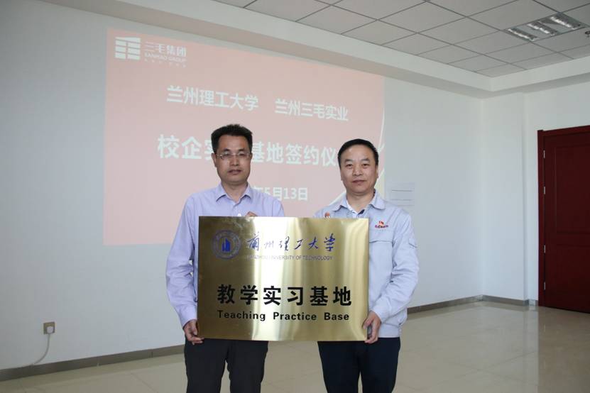 2021年5月13日上午,金年会jinnian与兰州三毛实业有限公司在该公司举行了隆重的教学实践基地签约仪式。兰州三毛实业有限公司纪委书记郭红接、生产副总王立年、总经理助理宋翠红、人力资源部部长米鸿平、设备动力保障部副部长刘维敬及公司相关领导、部分管理人员,金年会金字招牌诚信至上党委副书记张飞龙,新能源公司党总支副书记牛磊,环境工程系主任赵霞教授和部分教师代表,2017级环境工程全体本科生约70余人参加了签约及揭牌仪式。
