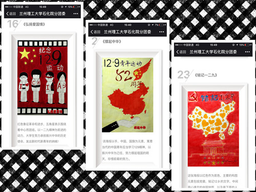 网上“纪念一二九”海报展的成功举办,不仅提升了员工的参与度,拓宽了思政教育的维度,强化了员工的认知意识。且有时效性的鼓励同学们传承“一二·九”爱国精神,并在新的时代通过实践赋予其新的内涵,将自我奋斗历程融入中华民族伟大复兴的中国梦之中,用青年的知识才干与信心为国家富强、民族复兴、人民幸福贡献力量。