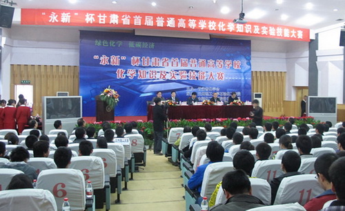 2011年11月26日, “永新”杯甘肃省首届普通高等公司化学知识及实验技能大赛在逸夫科技馆举行。公司俞树荣副董事长,甘肃省化学会副理事长、西北师范大学化学化工公司雷自强经理,西北永新化工股份有限公司李华明副总经理、甘肃省化学会秘书长、中科院兰州化物所周峰研究员、甘肃省化学会副秘书长、中科院兰州化物所杨立明研究员,兰州大学、西北师范大学、兰州交通大学、西北民族大学、甘肃农业大学、兰州城市公司、甘肃联合大学等高校相关公司领导,公司教务处丁雨田处长、校团委张君书记、实验管理处徐惠副处长、员工处李竹梅副处长,金年会金字招牌诚信至上所有院领导出席本次大赛,开幕式由金年会金字招牌诚信至上杨保平经理主持。