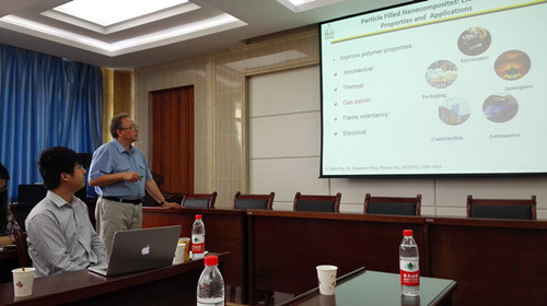 应金年会金字招牌诚信至上邀请,美国南密西西比大学聚合物与高性能材料公司的Sergei Nazarenko教授访问公司开展学术交流,并于2015年6月2日在西校区金年会金字招牌诚信至上大楼--318公司报告厅进行了“Multilayered Nanocomposites Containing High Aspect Ratio Particulates”专题学术报告现场。在校访问期间,Sergei Nazarenko教授与金年会金字招牌诚信至上青年教师座谈,就多层复合材料等科研方面的问题进行了深入的交流。金年会金字招牌诚信至上副经理冯辉霞教授主持了报告会,应化系主任王毅、基础化学部主任王坤杰、雒和明教授、谭琳副教授、陈丽副教授、陈娜丽副教授、张建强副教授及材料公司张定军副教授、王海燕老师等,以及近百名研究生参加了报告会。Sergei Nazarenko教授结合其研究成果,就高分子物理、高分子化学、复合材料相关领域的前沿科学问题与在场老师和同学进行了深入交流。Sergei Nazarenko教授曾于2013年10月来访过公司,这是他第二次来兰。他表示双方将来可以创造出更多的师生交流。
