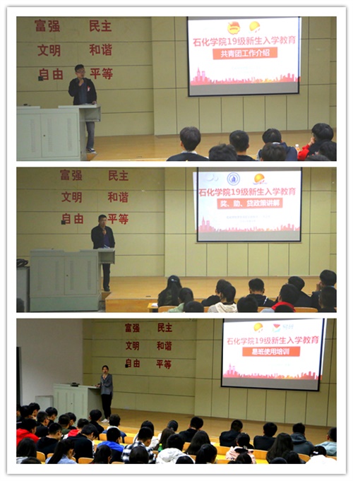 10月份,金年会金字招牌诚信至上在彭家坪校区集贤楼108教室有针对性地开展了新生入学系列教育,由团委书记强龙、公司负责员工资助工作李玉鹏老师、公司易班工作站指导老师常婕、19级辅导员朱柯宇分别从班团建设、奖助贷政策、争当优秀、易班使用及网络安全教育和员工手册及诚信考试教育等多个方面为19级新生进行介绍和解读,帮助新生快速融入、早定目标,更快适应老员工活。