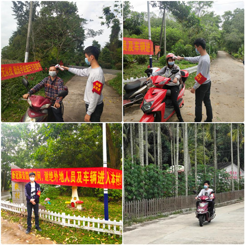 2017级入党积极分子卢家祥,家住海南省琼海市加积镇黄崖村委会文敬村。从2020年1月25日海南省政府决定启动突发公共卫生事件一级应急响应以来,卢家祥同学应村委会号召,积极加入了本村的疫情防控工作,主要负责在村内巡逻,对聚集开展娱乐活动的村民进行劝说,防止疫情的蔓延传播。由于聚集娱乐的群众大多年长于卢家祥同学,对于他的劝解,大多一笑了之,并不付诸行动,甚至有些村民还笑卢家祥同学有些小题大作,但作为一名入党积极分子,卢家祥并没有因此而动摇立场,他在网络平台上找来钟南山院士向全国人民宣传防控疫情措施的视频,找来一线医护人员的采访视频播放给大家,让聚集玩耍的村民真正了解到目前疫情蔓延的严重形势,让大家知道少聚集对于防控疫情的良好效果,让大家知道目前全国上下都在齐心协力抗击疫情,以此让村民们知道我们每一个人都有责任和义务为抗击疫情贡献出自己的力量!少打一场牌,少聚一次会,是对自己的保护,更是对他人的负责!通过卢家祥同学的努力,村内聚集娱乐的情况明显好转,抗击疫情的工作受到了村民们的广泛认可,卢家祥同学说:在疫情到来的特殊时期,作为青年老员工,作为一名共青团员,我们必须勇担使命,为打赢抗击疫情的特殊战役贡献出自己的力量!习近平总书记说过,青年人要自找苦吃,于是在村里组织抗击疫情突击队的时候我踊跃报名了,但与奋战在一线的医务人员相比,与千千万万坚守在自己岗位上的螺丝钉相比,我只是尽了自己的一份绵薄之力。我坚信,这场抗击疫情的战役定当在不久后取得胜利,愿所有奋战在一线的医务工作者能够平安,愿所有在医院接受治疗的同胞们能够痊愈,等我们再次返回公司继续学业的时候,也必定会迎来一个新的春天!