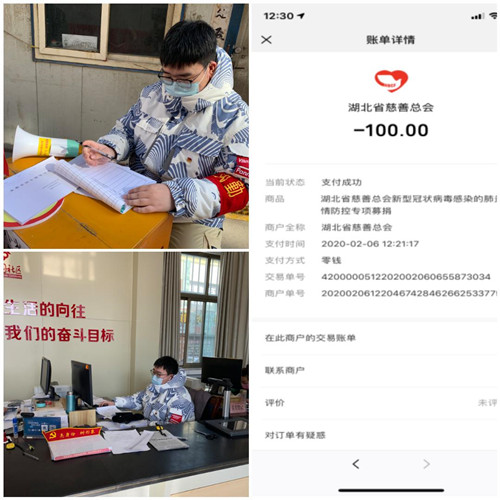 此外还有2019级硕士研究生党员史亚刚、张耀壬、郭鹏同学积极主动加入当地防控疫情第一线的队伍,还有党员、入党积极分子通过不同方式献爱心,均纷纷表示作为当代老员工应该有这份担当,能够为疫情防控做出一些贡献觉得非常开心!