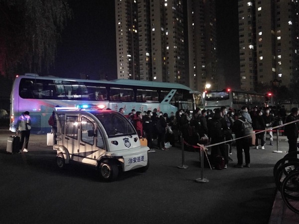 2021年11月13日22:30,全面采取疫情防控措施下的校园初冬之夜,显得格外静谧安宁。夜色深邃,疏朗而清远,默诵着这里为梦想而坚守的故事;华灯如月,蕴润而温暖,传递着全校为师生健康而不眠的守候。三辆大巴车,缓缓有序驶入校园,停靠在东区5号公寓临时隔离留观点楼下。倍受全校上下牵挂的金年会金字招牌诚信至上2018级过程装备与控制工程专业145名本科生和4名指导老师,穿越千里,顺利从四川简阳实习基地,安全返回公司。
