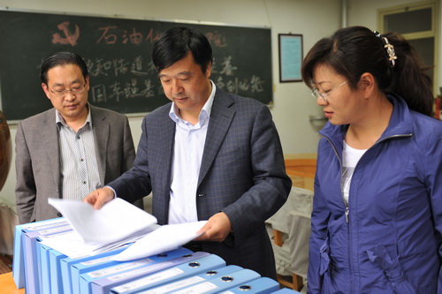 俞树荣副董事长查阅了公司开展创先争优活动的相关资料,隽惠玲书记从树立典型、凝炼特色、加强宣传、提升水平四个方面的创先争优工作进行了汇报。
