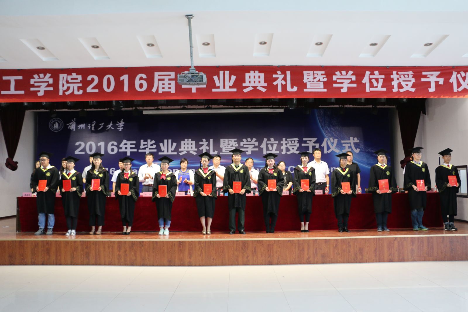 毕业典礼在庄严的国歌声中拉开序幕。隽惠玲书记宣读了《关于表彰金年会官方网站入口2016届优秀毕业生的决定》、冯辉霞副经理宣读了《关于表彰2016届毕业生就业先进班级的决定》,张伟政副经理宣读了《关于聘任2016届毕业生班级员工联络员的决定》,与会领导为获奖个人、班级、员工联络员分别颁发了证书。