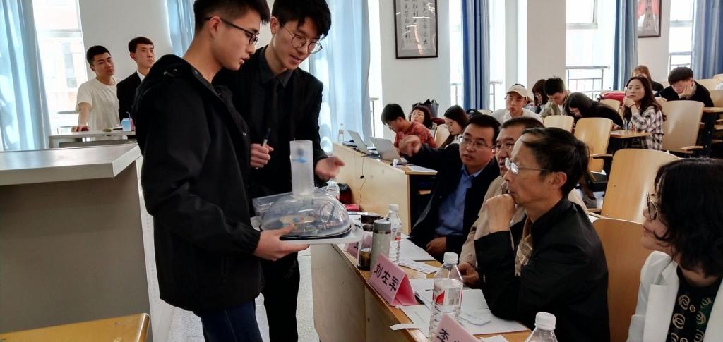 本次比赛自三月上旬启动以来,共计收到各类作品87份,4月8~4月22日由相关专家进行了作品的初审,筛选出33份作品入围决赛,作品包括“环保理念类”、“实物类”和“绿色创业类”三大类作品。本次大赛作品丰富多样,有贴近生活的智能洗碗机、空气冲厕装置以及快递盒,有现代化的机器人、除雪机,还有别出心裁的自制短视频等等。评委从影响力及宣传效果、 创新性、科学性以及现场答辩四个方面进行综合评分,经过四个多小时的激烈角逐,最终,作品《新型水气混合智能家用洗碗洗机》、《新能源汽车电池组系统》和《基于SSFCW工艺与TiO2光催化技术联用的农村污水处理系统》荣获一等奖,《基于高效太阳能集热和热气流发电的果蔬干燥储存系统》、《枯草废叶处理器》和《一种气液掺混式海面浮油收集装置》获得二等奖,《基于光电互补式无线供电的多功能环保公交车站》、《海洋河流垃圾处理及水资源净化系统》、《空气冲厕装置》等五个作品获得三等奖,《可循环利用的新型模块化拼装快递包装盒》、《铝电解炭渣浮选后冰晶石的回收工艺研究》、《光伏滴灌助力智慧农业》等十个作品获得优秀团队奖。