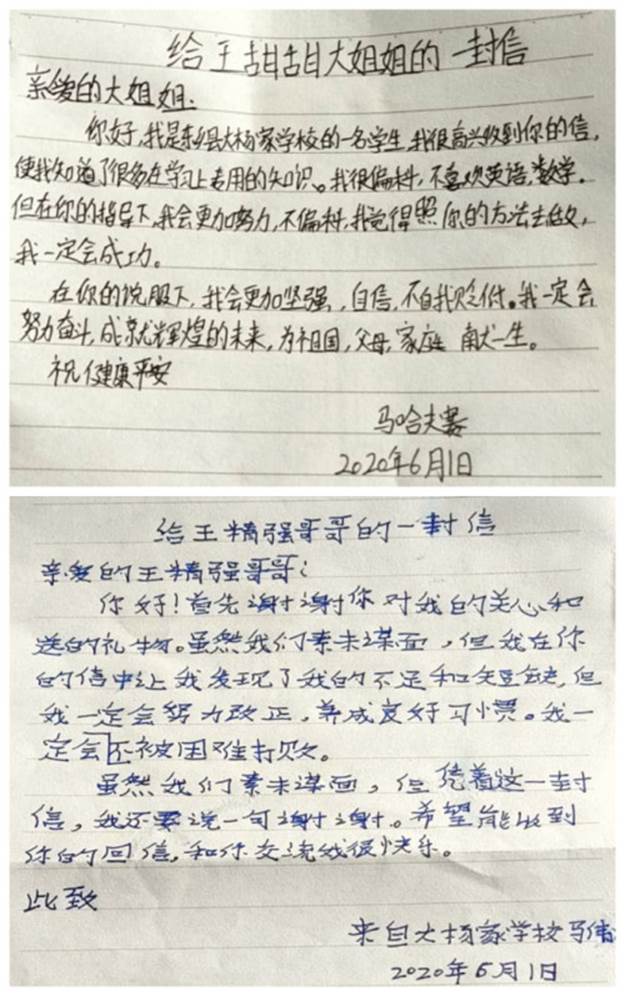 5月30日,经过和各公司董事长、班主任老师对接, 164封“爱心书信”、500余件文具分别由9件包裹寄往各公司,在六一儿童节之际为他们送上精神和物质上的温暖。收信孩子们积极回信,感谢哥哥姐姐关心的同时交流了自己学习生活的近况,表达了加深联系的愿望和努力学习的决心。