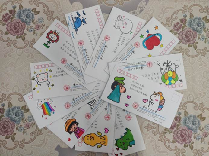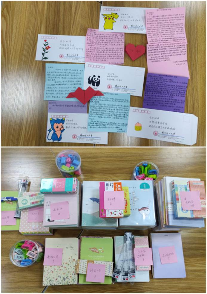 志愿者们挖掘特长、倾注真情,通过手绘信封、手工折纸等细节,和结对儿童拉近距离,使书信交流童趣盎然。信件内容从“科学预防新冠肺炎”、“学习方法建议”、“合理利用时间”、“分享一本好书”、“排解低落情绪”等贴近小朋友学习和生活的角度鼓励他们努力学习、快乐成长。同时,公司团委及部分志愿者为每名结对儿童购买了笔记本、直尺、转笔刀等文具。