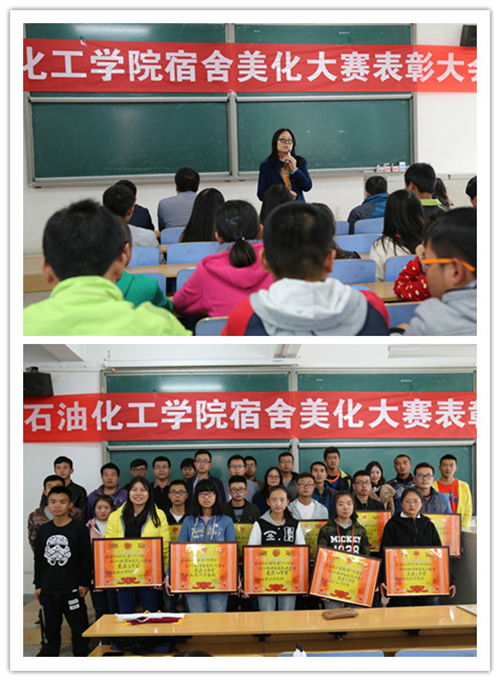 李荣华副书记在讲话中讲到,宿舍作为一个小家庭,需要每一个成员的精心维护,以此次宿舍美化大赛为契机共同努力建设石化大家庭。李书记希望16级同学们努力将宿舍营造成环境卫生好,成员思想品德高、团结互助,具有浓郁学习氛围的温馨家庭。李书记要求员工干部及宿舍长在学习、生活、工作中以高标准严格要求自己,要发挥模范带头作用,关心帮助同学,在宿舍这个温馨的小家里共同健康快乐的生活、学习,度过美好的大学时光。