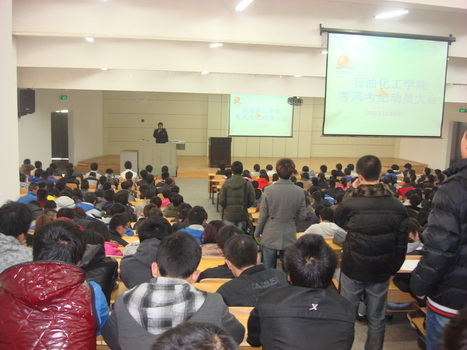 12月16日中午,公司召开学风建设之诚信考试动员大会,2011级520多名同学参加了大会。