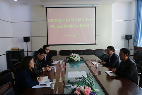 会上,李荣华副书记对无锡智能自控工程股份有限公司领导一行表示热烈欢迎。沈剑飞副总经理介绍了公司目前的发展状况,就公司对老员工的定位、培养体系和入职后的职业发展等方面做了详细说明。张茂其部长就校企合作的具体意向进行了说明。张伟政副经理介绍了公司公司科研工作、研究生和本科生培养情况,重点就过程装备与控制工程专业员工的培养方向、实习、毕业设计等内容作了详细介绍。李荣华副书记就企业奖助学金设立、员工就业情况作了详细说明。经校企双方的共同探讨,在奖助学金设立、员工实习、科研合作、企业员工培训等方面达成初步合作意向。