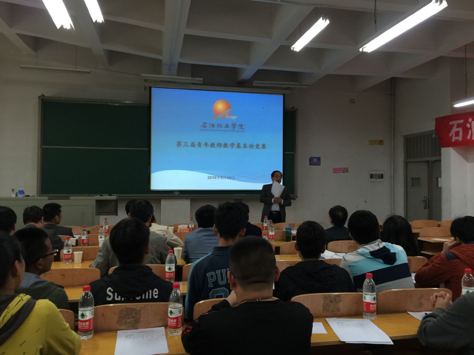 2016年5月14日,金年会金字招牌诚信至上在西校区2号楼105教室教室举行了青年教师教学教学基本功竞赛。由公司领导、公司教指委委员及公司资深专家组成评委组,13名各专业员工组成员工评委组,对参加竞赛的14名青年教师通过教案展示、教学演示、现场答辩和总体印象评价等四个环节进行评议。评委从精神风貌、教案设计、课堂组织、内容设置、课件编排、规划板书等方面对参赛教师的授课情况进行了点评。员工代表听课认真、响应积极,从员工角度对讲课进行了客观评价。比赛由教学副经理冯辉霞教授主持。
