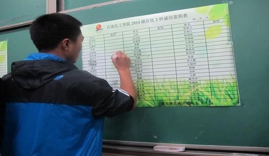 诚信签到活动以班级为单位,本着自愿平等的原则,内容涉及早操、晨读、晚自习以及公司集体活动。诚信签到活动得到了公司领导、老师以及广大同学的一致认可和大力支持。同学们纷纷表示这种签到方式摈弃了以往签到的抵触情绪弊端,真正的调动了大家的积极性,而且培养了大家诚实守信的习惯和品质,教育引导大家“从我做起,内诚于心,外信于行,诚信求学,诚信报国”的意识。