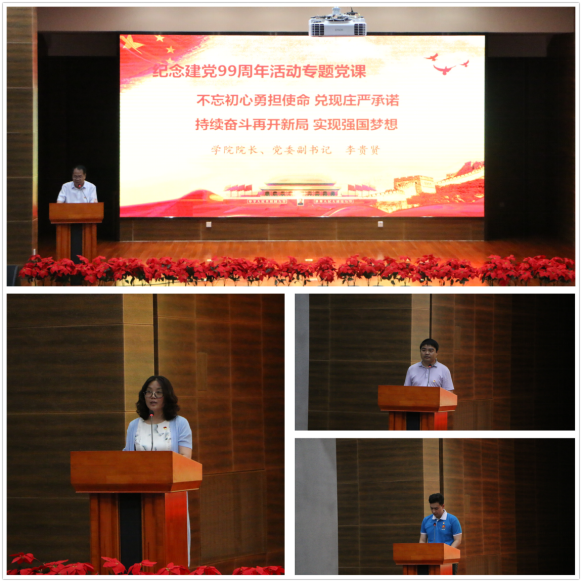 7月1日下午,金年会金字招牌诚信至上全体师生党员齐聚一堂,在彭家坪校区图书馆106报告厅举办了“迎七一、诵经典、感党恩”庆祝建党99周年系列活动。公司院领导、全体师生党员代表共计300余人参加,活动由员工工作办公室主任谢吉仁老师主持。