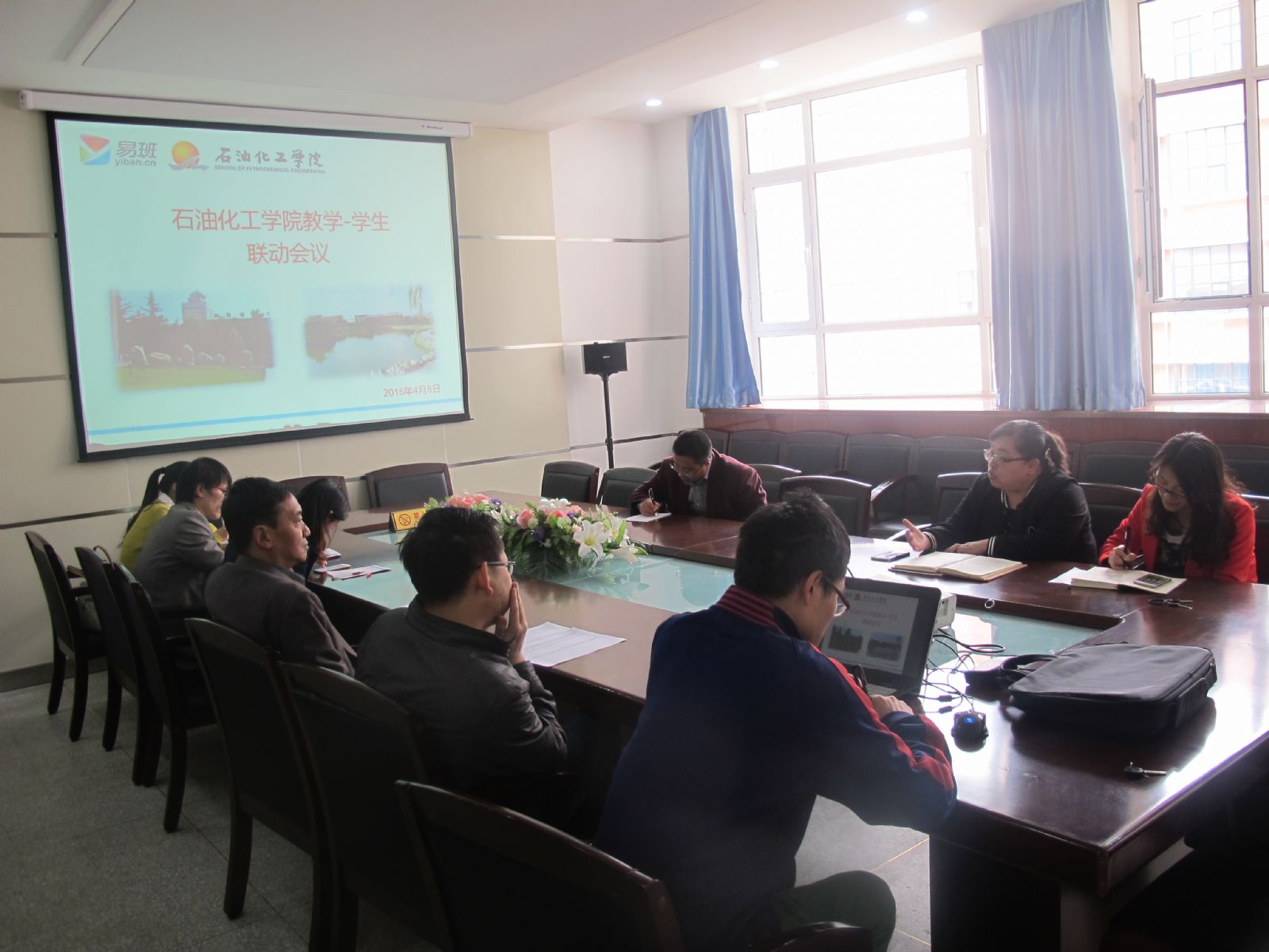 2016年4月8日下午,金年会金字招牌诚信至上在石化楼319召开了公司教学—员工联动专题会议,就公司利用易班平台实现教学—员工联动,实现教师—员工线上线下互动工作的进一步开展进行了研讨和部署。公司冯辉霞副经理,李荣华副书记,各教学基层组织主任、部分教师、辅导员参加了会议。