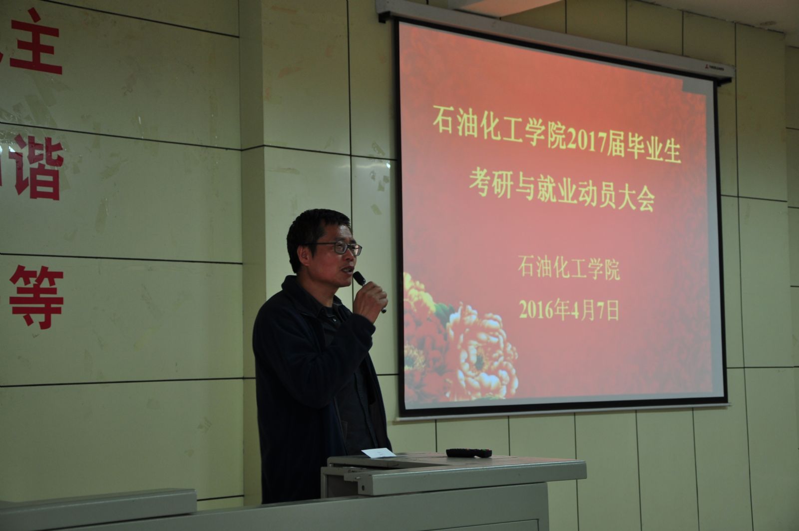 会议伊始,梁瑞副经理针对同学们即将面临的就业、考研、创业、出国等方面的内容结合现实一一分析了利弊,同时结合公司近几年的就业情况和考研的案例,分别给予了详细指导。针对严峻的就业形势,他希望同学们:要认真分析自身不足,积极行动起来,努力提高自身专业实践应用能力,提升自身的就业竞争能力;要切实转变就业观念,牢固树立“先就业,再择业”的观念,降低就业期望值,早签约,早就业。针对考研情况,他希望同学们能够根据自身复习的情况量力报考公司,脚踏实地,切勿好高骛远。紧接着李荣华副书记对2016届毕业生就业及考研情况向大家进行了通报分析,她希望同学们在就业方面认清形势,端正观念,树立信心;在考研方面,端正心态、立足现实,坚持就会成功。最后,祝愿2017届全体同学都能有一个美好的未来。
