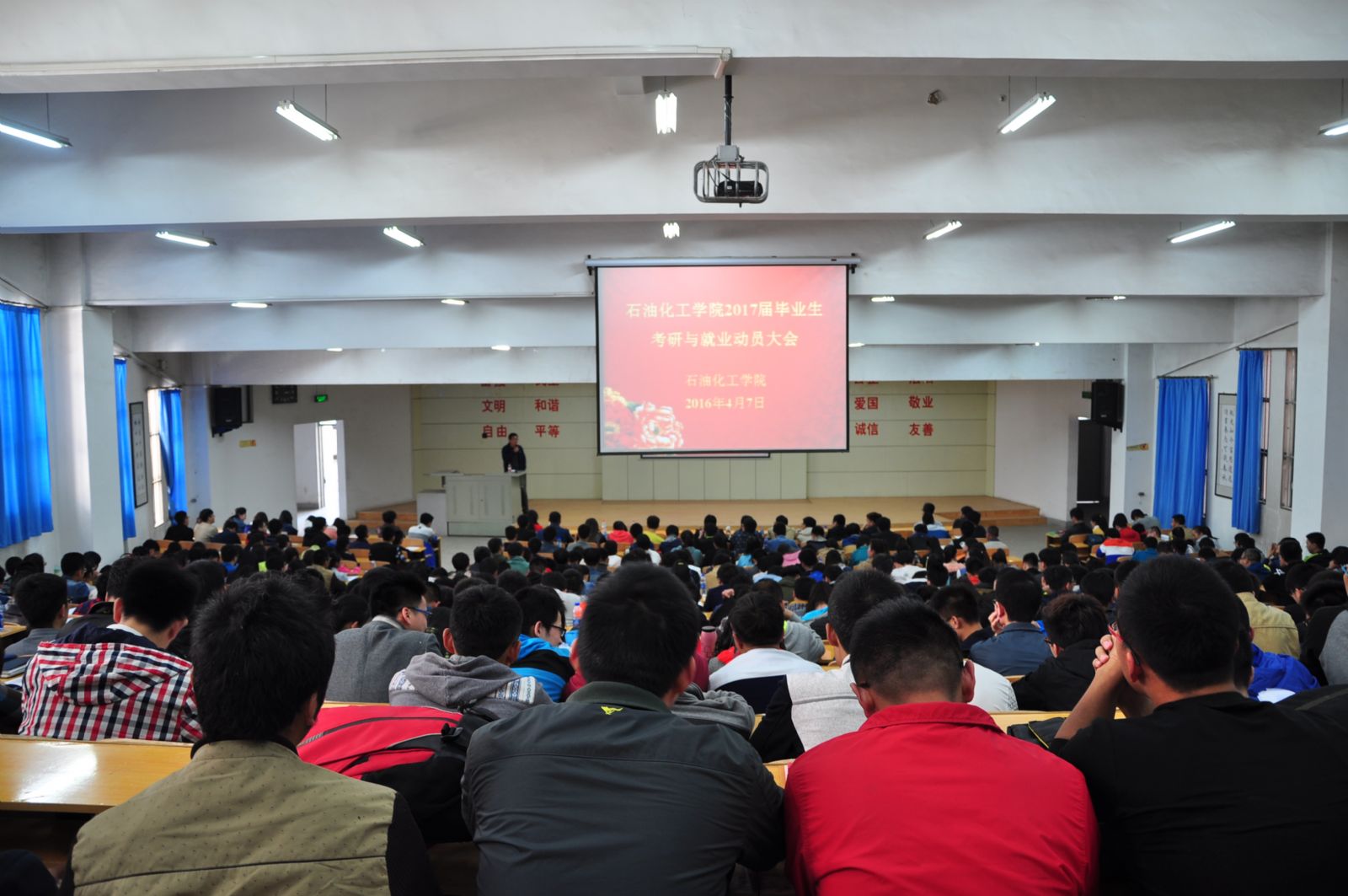 为提高公司2017届毕业生对就业形势的认识,尽早的树立正确的考研观、就业观和择业观,增强员工的竞争力,4月7日中午13:00,金年会金字招牌诚信至上在西教2号楼108教室召开2017届毕业生考研与就业动员大会,公司梁瑞副经理、党委李荣华副书记、年级辅导员及2017届全体同学总计450余人参加了大会。会议由骆焕涛老师主持。