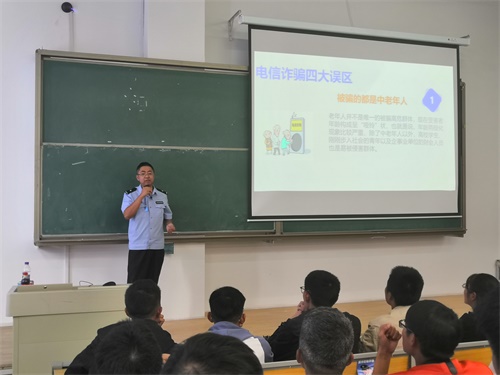 马顺延警官首先向大家介绍了“什么是电信诈骗”、电信诈骗的危害及突出特点以及一些老员工经历“电信诈骗”的事例。他着重向同学们讲解了电信诈骗的四大误区和电信诈骗的12大手段及应对方法,让同学们对电信诈骗有了更加深入的了解,告诫同学们要提高安全防患与自身信息保密意识,不要轻易点击链接与泄露个人信息,同时加强自身的遇事处理能力,树立诚实做人、不贪心、不盲目的人生观念。
